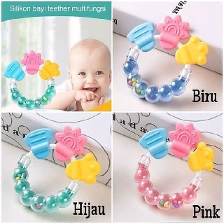 Mainan ini selalu menjadi tempat gigitan bayi yang berfungsi untuk merangsang pertumbuhan gigi pada bayi bentuk dari teether ini dibuat dengan desain yang nyaman digenggam oleh bayi sehingga selain merangsang pertumbuhan gigi mainan satu ini juga sangat bagus difungsikan untuk merangsang atau menstimulasi ketrampilan motorik halus pada bayi